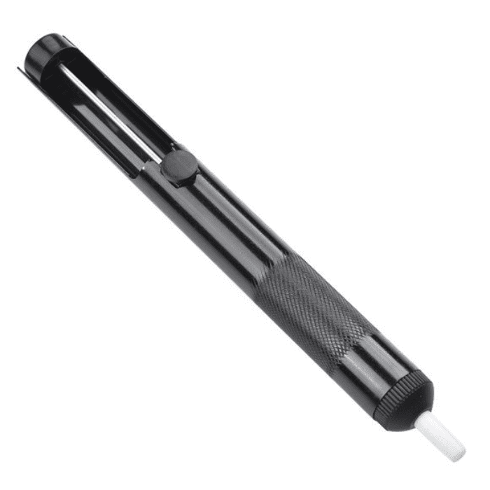 This Black Aluminium Body Desoldering Pump is an economical and durable full Aluminium metal body desoldering pump with a heat-resistant replaceable silicone tip. This quality product has exceptional desoldering ability due to strong suction and durable build.